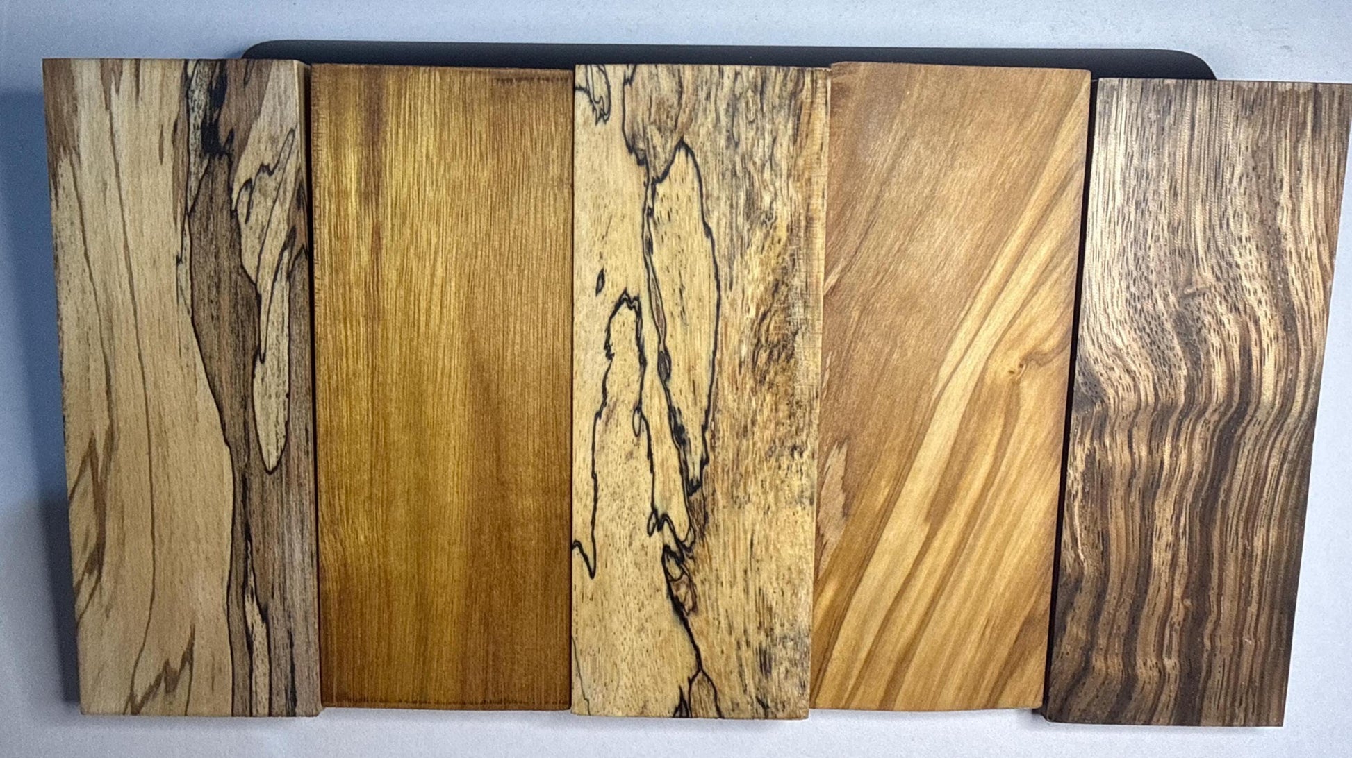 Zebrawood, Olivewood, Spalted Beech, Tamarind → Stabilized with Cactus Juice resin in a vacuum chamber for maximum durability and grain enhancement.